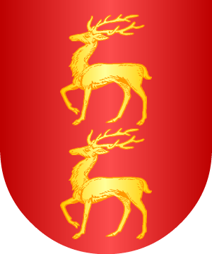 (otros cárdenos). 8.- Los de Murcia, originarios de Cataluña, usaron: Escudo partido: 1º, en campo de plata, un ciervo de azur, y 2º, en campo de plata, cinco ciervos de sable, puestas en sotuer. 9.- Los Cervellón de varias poblaciones aragonesas desde el siglo XV, traen: En campo de gules, dos ciervos de su color. 10.- Los Cervelló de Valencia, según Suárez Noguera, traen: En campo de oro, un ciervo pasante, al natural y surmontado de un águila bicéfala, coronada de sable. 11.- Los Cervelló, según Vicente de Cadenas, traen: En campo de sinople, sobre ondas de azur y plata, un castillo, de oro. 12.- Los Cervellón, según Vicente de Cadenas, traen: En campo de azur, un león rampante, de oro, coronado de lo mismo; bordura cosida de azur, con cinco escudetes de oro, cargados cada uno de una banda, de gules. 13.- Los Cervellón, originarios de Cataluña y radicados en Gerona, según Vicente de Cadenas, usan: En campo de plata, una torre cubierta, de azur, almenada y mazonada de sable. 14.- En el expediente del Caballero del hábito de San Juan en el Gran Priorato de Cataluña Bernardo Ortaffá Madrigal Terré y Cervelló, originario de la casa solar de Cervelló de Mallorca, año 1566, constan: En campo de oro, una cierva pasante de azur. 15.- Otros de Cataluña: En campo de gules, un ciervo de azur. 16.- En el expediente del Guardia Marina Domingo de Guisla y Salazar, natural de Las Palmas (Canarias), año 1749, constan las siguientes armas para los Cerbellón: "En campo de oro, un ciervo de su color, y en el mismo campo de oro, cuatro barras rojas". 17.- Pedro Alemán de Cervelló, año 1364, usaba: Una cabeza laureada a la derecha. Información sobre estos linajes por cortesía de blasonari.net |