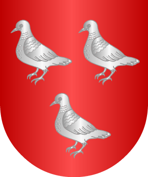 campo de gules, tres palomas de plata, puestas en triángulo mayor. 2.- Los Colomina de Aragón tienen: Escudo partido: 1°, de azur, con una banda de oro acompañada de dos palomas de plata, una en lo alto y otra en lo bajo, y 2°, también de azur, con un sol de oro. 3.- Los Colomines de Mallorca y Aragón ostentan: En campo de gules, una torre de plata con tres almenas, y en cada una de éstas una paloma de plata en actitud de levantar el vuelo. 4.- Los de Andalucía usan: En campo de plata, cinco cuervos, de sable, colocados en aspa; partido de azur, con un castillo, de plata. Bordura de gules, con ocho aspas de oro. 5.- Los Colominas, de Cataluña, usan: En campo de gules, un árbol, de oro. Bordura cosida, con ocho aspas, de oro. Información de estos linajes complementada por cortesía de blasonari.net |