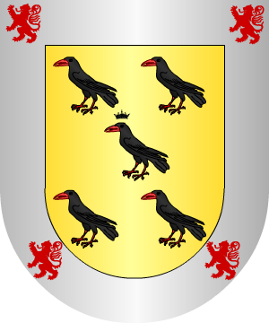 Castellano, del lugar de su nombre en el partido judicial de Villarcayo (Burgos). Armas De oro, cinco cornejas de sable, picadas y membradas de gules, puestas en sotuer, estando coronada la del centro. Bordura de plata con cuatro leones rampantes de gules. |