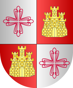 usan: Escudo cuartelado: 1º y 4º, en campo de gules, un castillo de