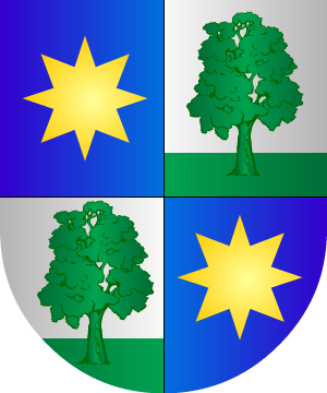 con media flor de lis de plata y un ala de oro. 6.- Otros: En campo de oro, un pino sumado de la imagen de la Virgen de la Inmaculada Concepción; al pie del pino un buey pasante. Bordura de oro cargada de ocho escudetes de gules partidos, con media flor de lis de plata y medio vuelo de oro, unidos en la línea de intersección. 7.- Otros, según Jorge de Montemayor, traen: En campo de oro, un árbol de sable. Bordura de plata con ocho escudetes de gules. 8.- Otros: En campo de plata, ondas de azur y plata y sobre ellas, un pez, de su color. 9.- Otros: En campo de oro, una encina, de sinople, arrancada y acompañada de una espada, en la diestra. 10.- Los de Ávila, según Rietstap, traen: De plata, un palo, de gules, cargado de dos besantes, de oro. 11.- Los de Aragón, según Rietstap, usan: De oro, un árbol arrancado, de sinople. 12.- Otros de Aragón, según Rietstap, traen: De azur, un árbol de sinople, terrasado de lo mismo y frutado de oro. Bordura de gules, cargada con ocho escudetes de azur, cargado cada uno de tres flores de lis, de oro, bien ordenadas. 13.- Los de Castilla, según Rietstap, usan: Escudo cuartelado: 1º y 4º, de plata con un árbol de sinople, terrasado de lo mismo y frutado de oro, acompañado de un lobo pasante, de sable, atravesado al tronco; 2º y 3º, de azur, cinco veneras, de oro, colocadas en aspa. 14.- Otros, según Rietstap, traen: Escudo partido: 1º, de azur, un tallo de castaño, de oro, frutado de cinco castañas, de lo mismo, colocadas una, dos y una, terrasado de sinople, y un perro pasante, de oro, atravesado; 2º, de azur, cinco veneras de oro, colocadas en aspa. 15.- Los de Milán, según Rietstap, traen: Escudo cortado: 1º, de oro, un águila de sable, coronada de oro; y 2º, de azur, una faja, de oro, cargada de una C de azur. 16.- Otros de Milán, según Rietstap, usan: Escudo cortado: 1º, de oro, un águila de sable; 2º, de gules, tres bandas, de plata; brochante sobre el centro del escudo, una faja, de azur, cargada de dos C góticas, de plata. 17.- Los de Lombardia, según Rietstap, traen: De oro, un tenedor, con mango corto y adornado, de gules, de dos dientes (puntas), sumado de una corona del mismo color, y acompañado de tres castañas de gules, colocadas, dos en los flancos y una en punta. 18.- Los de Sicilia, según Rietstap, usan: De azur, una rama de castaño, frutada de cinco castañas colocadas una, dos y una, todo de oro, sobre una terrasa de sinople. 19.- Los de Roma, según Rietstap, traen: En campo de oro, una banda de gules, cargada de tres bezantes, de oro. 20.- Otros de Roma, según Rietstap, traen: De azur, un árbol de sinople, terrasado de lo mismo y frutado de oro, con un unicornio pasante, de oro, atravesado al tronco, en jefe una estrella, de oro. 21.- Los de Nápoles, según Rietstap, usan: De azur, un árbol de sinople, frutado de oro, acompañado de dos leones rampantes y afrontados, del mismo color, todo sobre una terrasa de sinople. 22.- Otros de Nápoles, según Rietstap, traen: De azur, una faja de oro, acompañada en jefe de tres veneras, de oro, colocadas en faja, en punta tres bandas de oro. 23.- Los de Venecia, según Rietstap, usan: De oro, un árbol de sinople, frutado de oro. 24.- Los de Bolonia, según Rietstap, usan: De azur, una faja de gules, acompañada en jefe de las letras O C del mismo color. Jefe de oro, cargado de un águila de sable, coronada de oro. 25.- Otros de Bolonia, según Rietstap, traen: De azur, una campana de plata, acostada de dos leones rampante y afrontados de oro. Jefe de azur, cargado de tres flores de lis, de oro, colocadas entre los huecos de un lambel de cuatro puntas, de gules. 26.- Los de Francia, según Rietstap, usan: De gules, una castaña, de oro. 27.- Los de Flandes, según Rietstap, traen: De oro, tres bandas, de gules, acompañadas de dos roeles, de sinople, una en el jefe a la siniestra y el otro en punta a la diestra. 28.- Los de Colonia, según Rietstap, usan: De sinople, diez bezantes, de oro. 29.- Los de Bohemia, según Rietstap, traen: De azur, cinco bezantes, de oro, colocados en aspa. 30.- Los de Hungria, según Rietstap, usan: De azur, una barra, de gules, brochante una banda, de plata; el sotuer formado cantonado de cuatro bezantes de oro. Información de estos linajes por cortesía de blasonari.net |