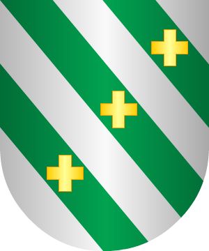volando, de sable. 4.- Algunos Cucalá: En campo de plata, tres bandas, de sinople, cargada cada una de ellas, de una cruz, de oro. 5.- Otros Cucalón: En campo de plata, un águila, de sable, coronada de oro y con una rosa, tallada en su garra diestra. 6.- Otros Cucalón: Escudo partido: 1º, en campo de plata, una paloma pasante al natural, y 2º, en campo de gules, una flor de lis de oro. 7.- Los apellidados Cucalón de Montull, de Altoaragón y originarios de Francia, usan: En campo de gules, una flor de lis de plata. Información de este linaje por cortesía de blasonari.net |