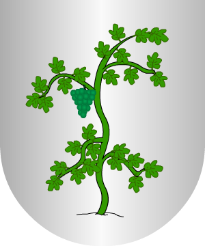 Escudo partido: 1º, de plata, con el grajo de sable, y 2º, de gules,