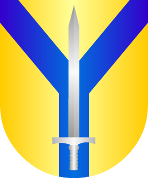 de seis puntas, de plata, puestas en faja. Bordura de oro con ocho aspas, de