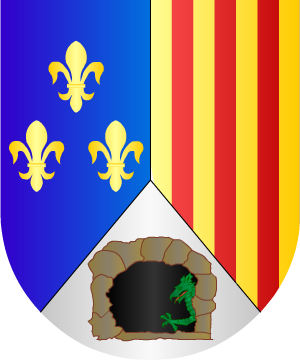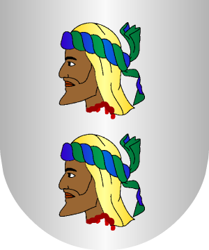 oro. Estas mismas armas usaban los de Ubeda. 13.- Otros traen: Escudo mantelado: 1º, en campo de azur, tres flores de lis de oro, bien ordenadas; 2º, en campo de oro, dos palos de gules, y 3º, o mantel, de plata con una boca de cueva, saliendo de ella un dragón fiero de sinople echando llamas por la boca, y medio salido, sin la bordura. 14.- Los de Ubeda, según Bernardo de Estrada y Nava, traen: Escudo mantelado: 1º, en campo de azur, tres flores de lis de oro, mal ordenadas; 2º, en campo de oro, cuatro bastones de gules, y 3º, en campo de sinople, un dragón de oro saliendo de una cueva oscura. 15.- Los de Alcorisa (Teruel) usan: Escudo mantelado: 1º y 2º, en campo de oro, dos palos de gules, y 3º, o manteladura, de azur, un dragón de oro, linguado de gules. Bordura de gules con ocho sotueres de oro. 16.- Los Duques de Alburquerque usan: En campo de plata, y en el medio de él una lisonja de gules cargada de un castillo de oro; y en los cuatro ángulos, leones rampantes de púrpura. 17.- Otros usan: En campo de plata, y en el medio de él una lisonja de gules cargada de un castillo de oro; y en los cuatro ángulos, leones rampantes de gules. 18.- En la casa llamada del Patriarca, calle del campo o Sopuente, de la villa de Selaya, del valle de Carriedo (Cantabria), constan: Escudo mantelado: 1º, tres flores de lis, mal ordenadas; 2º, tres palos, y 3º, o manteladura, una cueva y un dragón que saca la cabeza por ella. 19.- En la calle de la Carrera, de Santillana del Mar, constan: Tres palos que apoyan en una ojiva o boca de cueva por la que asoma un dragón. 20.- En la torre llamada de Beltrán de la Cueva, del lugar de Queveda, del municipio de Santillana del Mar (Cantabria), constan: Un guerrero montado en su corcel, que introduce su lanza en la boca de un dragón, todo sobre ondas de agua, con una inscripción que dice "Cueva". 21.- A pedimento de Toribio Pérez de Bustamante, que era Señor de la Casa de Cueva en Queveda en 1649, se certifican las armas de esta casa por Juan Francisco de Hita, de esta forma: En campo de azur, una torre de oro, orpasada de gules sobre un risco al natural, y al pie de ella una gruta y a su puerta tres cabezas de moros con turbantes de plata y gules. 22.- Don Enrique IV de Castilla concedió a Beltrán de la Cueva, primer Duque de Alburquerque, primer Conde de Ledesma y de Huelma, las siguientes armas: Escudo cortado bajado: 1º, en campo de oro, cuatro palos, de gules, y 2º, en campo de sinople, una cueva, de sable, de la que sale un dragón, de oro, lampasado de gules. 23.- Otros añadieron una bordura de gules con ocho sotueres de oro. Complemento de información de estos linajes por cortesía de blasonari.net |