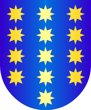 perro de plata rampante, cargado de una flor de lis de azur en la cara y sosteniendo