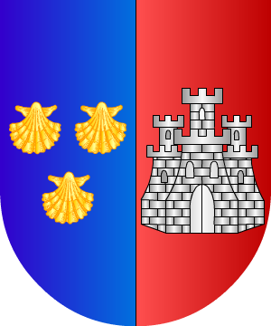 perro de plata rampante, cargado de una flor de lis de azur en la cara y sosteniendo