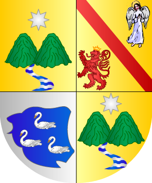 y plata. Bordura de oro con ocho cabezas de león de su color natural