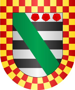 Elordui Elorduy Vasco, de Oñate (Guipuzkoa), y en Zamudio, Axpe (Atxondo), y Erandio (en Bizkaia). Etimología: Espinal (elorri, elor: espino, y suf. abund. -dui. Hidalguía: Caballero de Carlos III en 1803. Armas 1.- La casa de Oñate: escudo contrafajado de ocho piezas de oro y azur, empezando por oro. Bordura de gules, con ocho jaqueles de veros de azur y plata, en dos órdenes. 2.- Otro: Partido: 1.º, fajado de ocho piezas de oro y azur, cuatro de cada esmalte; 2.º, contrafajado de los mismos esmaltes. Bordura general de gules, con ocho jaqueles de veros de azur y plata, en dos órdenes. 3.- Otros Elordui: En azur tres fuentes de plata, bien ordenadas. |
