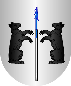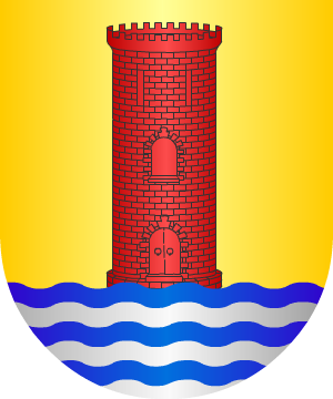 D'or, à une tour de gueules, coulissée du même, posée sur un fascé-ondé de quatre pièces d'azur et d'argent. En oro, una torre, de gules, mazonada de lo mismo, puesta sobre ondas de azur y plata. (Ref.: RIETSTAP) |