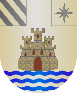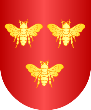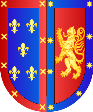 Partido: 1.º, en azur, cinco flores de lis de oro, puestas en aspa, y bordura de gules con ocho aspas de oro (Fernández), y 2.º, en gules, un león de oro rampante, y bordura de azur con ocho estrellas de oro (Linares). (Ref.: CADENAS), (ref.: GARCIA CARRAFA) |