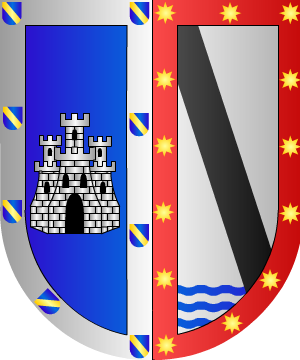 Castellano de las montañas de Santander. Atravesado por una banda de sinople, engolada en cabezas de dragones de oro; la parte alta, de azur, con un lucero de plata, de ocho rayos, y la parte baja, de oro, con un león de gules, coronado de oro. (Ref.: CADENAS), (ref.: ATIENZA), (ref.: GONZALEZ-DORIA) |