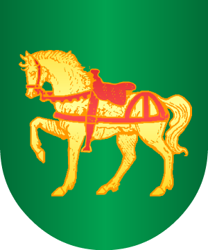 En sinople, un caballo de oro, enjaezado, de gules. (Ref.: CADENAS) |