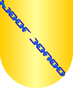 De azur una TAU de gules, perfilada de oro, acompañada en jefe por tres luneles de oro, ranversados y otros dos en la punta (tornado y contornado) , en el centro de la misma, una estrella de seis puntas (todo ello de oro menos la estrella qu es de plata).