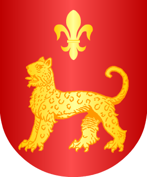 y acompañada de dos gallos de su color, uno en lo alto y otro en lo bajo. 2.- Los de Calamocha (Teruel), según Pedro Vitales, traen: En campo de oro, una banda de gules engolada en cabezas de dragones de sinople y acompañada de dos gallos de plata, uno en lo alto y otro en lo bajo. 3.- Los de las Montaña de Santander tenían las mismas armas de los Velasco, o sea: Escudo jaquelado de quince piezas, ocho de oro y siete de veros de azur y plata en dos órdenes. 4.- Los originarios de Ortigosa, según Vicente de Cadenas, traen: En campo de plata, dos leones, de su color, puestos en faja. Bordura de gules con ocho aspas, de oro. 5.- Los de León, según Diego de Soto y Aguilar, traen: Escudo cuartelado en cruz: 1º y 4º, de oro, y 2º y 3º, de gules. 6.- Otros: En campo de plata, cinco granadas, de oro, rajadas de gules y hojadas, de sinople, puestas en aspa. 7.- Los de Portugal ostentan: En campo de gules, un leopardo andante de oro, surmontado de una flor de lis del mismo metal. 8.- En la calle de José Antonio, de Támara (Palencia), constan: Cuatro fajas y brochante una banda. 9.- El Capitán Francisco Pedro Gallardo, perteneciente a la familia de este linaje de la provincia de Almería y citado anteriormente, usó el siguiente escudo cuartelado, por concesión del Rey Don Felipe II: 1º, en campo de azur, tres flores de lis, de oro, puestas en faja; medio cortado de gules, con una bandera de plata; 2º, en campo de sinople un guerrero armado de plata, que representa la persona del Capitán Hernando Portocarrero con las manos atadas con una cadena, también de plata, moviente del flanco diestro; 3º, en campo de sinople, una cabeza de guerrero armada de plata, con el rostro de carnación, que representa la del Capitán García de Zaífar, y una espada que la atraviesa por la boca, y 4º, en campo de sinople, un castillo de plata, y a la puerta un hombre armado de sable. Información de estos linajes complementada por cortesía de blasonari.net |
