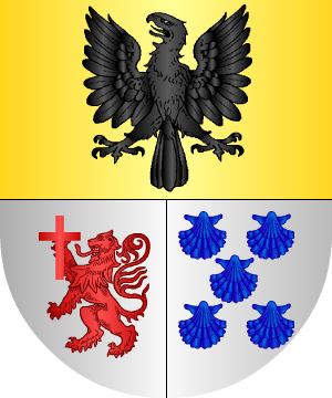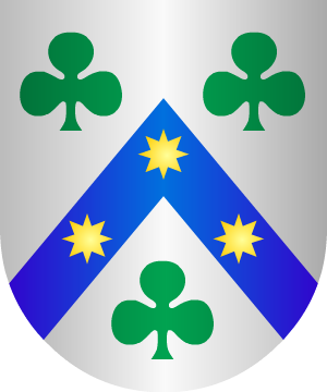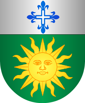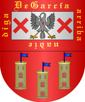 Cortado: 1º, en plata, una garza de frente con las alas abiertas, de sable, picándose el pecho, rajado de gules, acompañada de dos aspas, de gules; bordura de gules con la leyenda: "De García arriba nadie diga", en letras de oro. 2º, en gules, tres torres, de oro, almenadas, mazonadas de sable y aclaradas de gules, con una bandera, de azur, en cada una de ellas. (Ref.: CADENAS). |