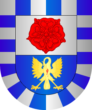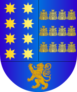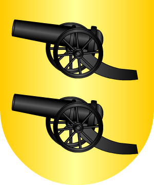 En oro, dos cañones, de sable, puestos en palo. (Ref.: CADENAS). |