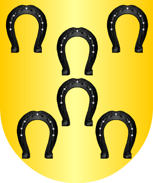 México. Partido: 1º, en gules, nueve roeles (bezantes) de oro, y 2º, en plata, cinco hojas de higuera de sinople; medio cortado de azur, con un león de oro, que lleva un alfanje en sus manos. Bordura de oro, con ocho aspas de gules. (Ref.: ATIENZA), (ref.: GONZALEZ-DORIA), (ref.: CADENAS). |