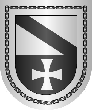 Armas En azur, sobre tres ondas de plata y azur, un puente de cuatro ojos, con dos guerreros en su diestra. (Ref.: CADENAS). |
