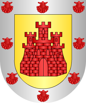 Armas En azur, seis estrellas de plata, puestas de dos en dos. Bordura dentellada, de plata. (Ref.: CADENAS). |