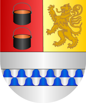 Armas En gules, un castillo de plata, y una cadena de oro, sujeta a la puerta del castillo, a la que está atado un lebrel de plata; saliendo del homenaje del castillo, un muchacho arrojando tres panes de plata al lado diestro del escudo. (Ref.: CADENAS). |