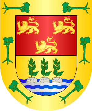 Sin referencias documentales sobre sus orígenes. Armas En campo de azur, un guante palmado, de plata, acostado de dos estrellas del mismo metal. En punta, ondas de agua de azur y plata. |