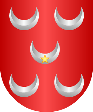 rampante de su color. 5.- Los Herrán, de Almería: Escudo cuartelado: 1º, y 4º, de oro, con una caldera de sable, y 2º, y 3º, de gules, con una torre de oro. 6.- Las armas descritas por Vicente de Cadenas y Vicent para los Herrán y Herranz: En campo de oro, una torre de gules, aclarada del campo y surmontada de un águila exployada y coronada, de sable. 7.- Otros Herrán: En campo de gules, un delfín nadante de oro. 8.- Otros Herranz: En campo de azur, un báculo de plata, surmontado a la diestra de una mitra de oro. 9.- Algunos Herráiz, de Castilla: En campo de gules, una cruz de oro, cargada de cinco fusos de azur. 10.- La casa de Herráinz, de la villa de Ventrosa de la Sierra, en La Rioja: En campo de plata, un roble de sinople, y atravesado al tronco, un león de su color. 11.- Otros Herráinz: En campo de azur, una cruz de oro, cargada de cinco merletas de sable. 12.- Otros Herráinz, según Cadenas, originarios de Galicia y radicados en Oviedo y Santander, traen: En campo de oro, cinco merletas, de sable, puestas en aspa. 13.- Otros Herrán, según Cadenas, originarios de Nates: En sinople, nueve castillos, de plata, puestos en tres palos de a tres. 14.- Otros Herrán, según Cadenas, originarios de las montañas de Santander y radicados en Santander, Burgos y Bilbao, traen: En campo de plata, dos ballestas, de azur, puestas en palo. Bordura de gules con ocho calderas, de oro. 15.- Otros Herránz, según Cadenas, radicados en Villaverde: En gules, diez armiños, de oro, puestos en tres fajas de a tres y uno. 16.- Otros Herránz, según Cadenas, originarios de Castilla y radicados en Madrid en Madrid y Huesca: En campo de sinople, dos lobos, de oro, puestos uno encima del otro. Complemento de información de estos linajes por cortesía de blasonari.net |
