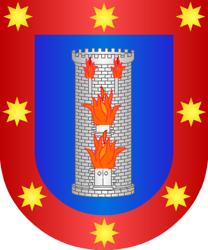 El Emperador D. Carlos I concedió en 20 de Julio de 1538, el siguiente escudo de armas a D. Pedro López de Alcántara, vecino de Indias: En campo de azur, una torre de plata, ardiendo; bordura de gules, con ocho estrellas de oro. (Ref.: ATIENZA), (ref.: GONZALEZ-DORIA). |