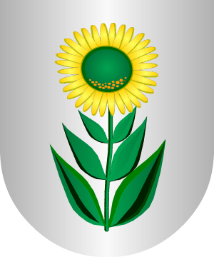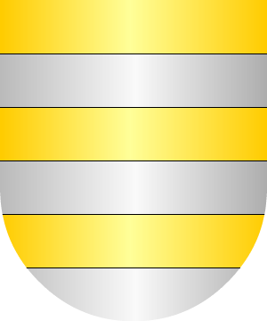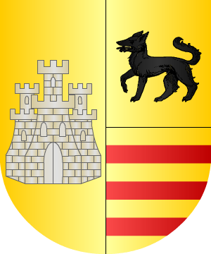 Escudo partido y semicortado: 1º, en oro, un castillo de piedra, 2º, un lobo de sable y 3º, en oro, tres fajas de gules. (Ref.: ERDOZAIN). |