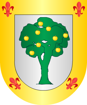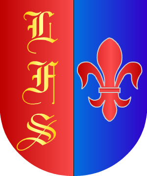 Partido: 1.º, de gules, con las letras L. F. S. En oro, y 2.º, de azur, con una flor de lis de gules, perfilada de plata. (Ref.: CADENAS). |