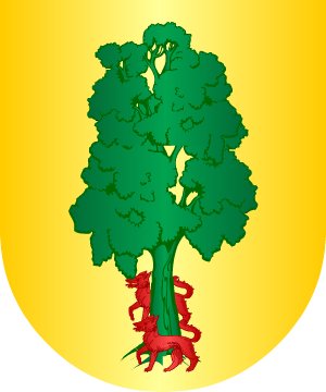 Guipuzcuano. Cuartelado: 1.º y 4.º, de plata, con una encina de sinople, frutada de oro, y un jabalí de sable empinado al tronco, y 2.º y 3.º, de azur, con una torre de plata. (Ref.: GARCIA CARRAFA). |