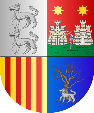 Castellano. Cortado: 1º, en oro, dos flores de lis de azur, puestas en faja, y 2º, en plata, tres árboles de sinople también en faja. (Ref.: CADENAS). |