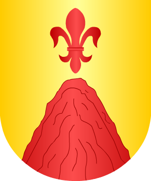 en lo alto de un león rampante, de gules, y en lo bajo, de ondas de agua