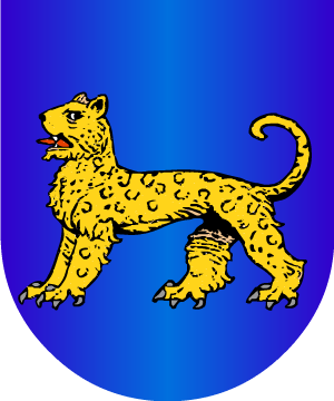 escudo de armas: Cuartelado: 1º, en campo de sinople, un grifo de oro,