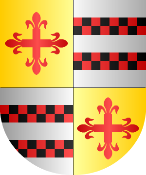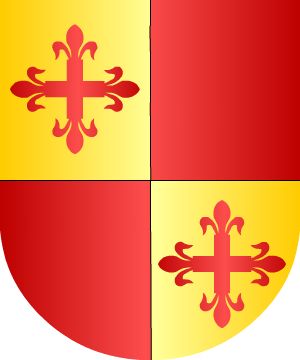 4.- Los Muñoz de Hinojosa, traen: Escudo cuarteado: 1º y 4º, de oro, una cruz flordelisada, de gules y 2º y 3º de gules.