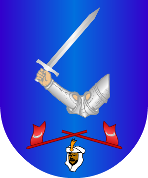 En gules, un aspa, de plata. Bordura de azur, con dos columnas de oro. (Ref.: CADENAS), (ref.: QUEREJETA), (ref.: MOGROBEJO) |