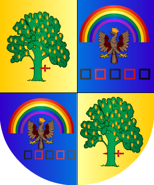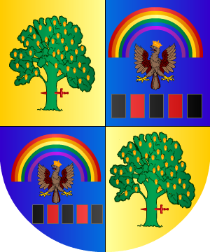 4º, de oro un árbol terrazado de sinople atravesado por su tronco