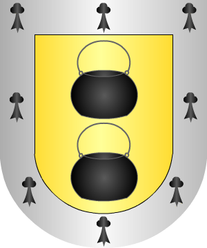 | Salinas Salines Apellido, frecuente y repartido por España. Tuvo varias casas solares, sin relación de parentesco entre sí, pues procede del topónimo Salinas, nombre de poblaciones como la Villa de Salinas de Oro, del partido judicial de Estella, (Navarra), Salinas (Alicante), Salinas de Añana (Álava), Salinas de Pisuerga (Palencia), Salinas de Jaca (Huesca), Salinas de Léniz (Guipúzcoa), etc. En toponimia, la idea de –salina- implica la presencia de lagunas saladas que son aprovechadas para la extracción de sal. Casas solares del apellido Salinas hubo en el País Vasco, Navarra, Aragón y Castilla, cuyas ramas se extendieron por España. Entre las de Navarra, País Vasco y Aragón las hubo muy nobles. De Aragón fue Guillermo Salinas, que pasó en el S. XIII a la conquista del reino moro de Valencia sirviendo al Rey Jaime I de Aragón, siendo heredado en Campanar (Valencia). En Navarra, existieron casas solares en Abárzuza y en lugar de Ibiricú. La casa solar de Mondragón, ya en Guipúzcoa dio a don Plácido de Salinas, General de la Orden de San Benito en España y Abad del Monasterio de Montserrat, en el siglo XVI. De esta misma casa procedió don Ochoa Ibáñez de Salinas, Escribano Real en 1.384. Otros Salinas castellanos, murcianos, extremeños y andaluces probaron su hidalguía ante las Reales Chancillerías de Valladolid y Granada. En la de Granada lo hicieron, entre otros: Juan de Salinas, vecino de Las Cuevas de Cañatazor (Cuenca), en 1528; Rodrigo de Salinas Pineda, vecino de Sevilla, en 1608, y Carlos Salinas Moreno, vecino de Murcia, en 1773. En Catalunya, donde el apellido se escribe Salines o Salinas, según el censo de hogares de 1553, Joan Salines vivía en Estamariu (Lleida); “en Salines” vivía en Los Tagels (Tarragona), y Joan y Antoni Salines vivían en Diern (Cardona). El linaje Salinas probó repetidas veces su nobleza para ingresar sus miembros en las diversas Ordenes Militares, Santiago, Alcántara y Calatrava. Jerónimo de Salinas fue uno de los conquistadores españoles en el Nuevo Mundo figurando como descubridor de la Nueva España con Cristóbal de Olid. Tomó parte, con Narváez, en las tomas de Jalisco, Zacatula, Panuco, México y Tiltepec. Un caballero de este apellido dio nombre al municipio de Salinas, Estado de San Luis de Potosí, en México. Como nombre geográfico se encuentra ampliamente difundido no sólo en España sino en América. Armas 1.- En campo de azur, dos áncoras de oro puestas en faja. 2.- Según Rietstap traen: Escudo cuartelado: 1º y 4º, de sable, una cruz trebolada, de oro, y 2º y 3º, de azur, una flor de lis, de oro. Bordura de gules, con ocho aspas, de oro. 3.- Otros traen: Escudo cuartelado; 1º y 4º, de gules, un castillo de oro; 2º y 3º de oro, una flor de lis de azur. 4.- Otros: Escudo partido; 1º, de gules tres hoces de plata encabadas de oro, puestas en palo; 2º, de plata, cinco flores de lis de azur puestas en sotuer. Bordura de gules, con ocho aspas, de oro. 5.- Los de Castilla, según Rietstap, tran: Escudo cortado: 1º, de oro, una torre donjonada, de plata, aclarada de gules, acostada de dos leones rampantes y afrontados, de gules, uno a cada lado y 2º, de sinople, en abismo un escusón, de azur, cargado de seis fajas ondeadas, de plata. 6.- Otros traen: En campo de oro, un árbol de sinople con dos lobos de su color empinados a su tronco. En punta, dos jabalíes de sable, afrontados, comiendo las bellotas que han caído del árbol. 7.- Otros de Aragón: Escudo cuartelado, 1º y 4º, en campo de azur, cinco hoces de plata y en punta, ondas de agua de azur y plata; 2º y 3º, en campo de gules, un castillo de plata con una caldera de sable colgada de una de sus almenas y acompañada de dos lobos afrontados, también de sable, que beben de ella estando en posición de salto. 8.- Otros: En campo de azur, un castillo de oro, acostado de una escala también de oro que llega hasta las almenas. 9.- Otros traen: En campo de oro, una encina, de sinople, y dos lobos de sable empinados al tronco. En el cantón siniestro del jefe, un águila volante de sable en actitud de posarse sobre la encina. 10.- Otros: Escudo partido; 1º de oro, seis roeles puestos en palo, los cinco de abajo, de gules, y el alto de azur, en jefe, tres flores de lis, de plata puestas en faja, y 2º, en azur, un puente, de plata, superado de un castillo de oro. 11.- Los de Zaragoza: En campo de oro, trece roeles de sable puestos en tres palos; 4, 5, y 4. 12.- Los de Jaca traen: En campo de gules, un sol de oro; en punta una salina de plata y azur. 13.- Radicado en Barcelona. En oro, un león rampante, de gules, linguado de lo mismo y coronado de oro. 14.- Los de Portugal traen: De plata, un cabrío, de gules, acompañado de tres flores de lis, de gules. Complemento de información de estos linajes por cortesía de blasonari.net Bibliografía Enciclopedia Hispanoamericana de Heráldica, Genealogía y Onomástica de los hermanos Arturo y Alberto García Carraffa. El Solar Vasco Navarro de los hermanos Arturo y Alberto García Carraffa. Repertorio de Blasones de la Comunidad Hispánica de Vicente de Cadenas y Vicent. Blasonario de la Consanguinidad Ibérica de Vicente de Cadenas y Vicent. Armorial Général de Johan Baptiste Rietstap. Nobiliario Español de Julio de Atienza. Diccionario de Heráldica Aragonesa de Bizén Do Río Martínez. Nobiliario de Extremadura, de Adolfo Barredo de Valenzuela y Arrojo y Ampelio Alonso de Cadenas y López. |