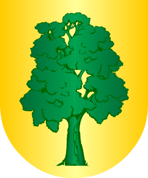 con una faja de oro; y 2º y 3º de plata, con un roble de sinople terrazado